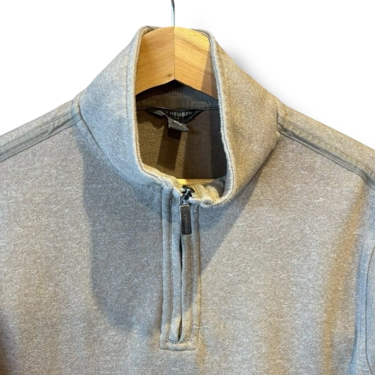 ヴァンヒューゼンのコットンニットハーフジップです。で、カジュアルからフォーマルまで幅広いシーンで活躍するアイテムです!
