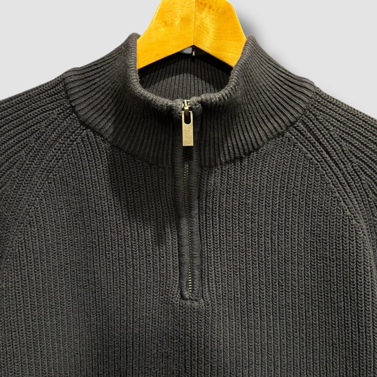 コットンニットハーフジップです。フェード感のあるブラックカラーは、どんなスタイルにもマッチし、カジュアルからフォーマルまで幅広いシーンで活躍できるアイテムです! ハーフジップデザインは着脱が簡単で、気温に応じた調整もスムーズに行えます。このニットは柔らかなコットン素材を使用しており、長時間の着用でも快適な着心地をお楽しみいただけます。さらに、洗練されたシルエットが魅力で、重ね着を楽しむこともできます。季節を問わず、あなたのワードローブに欠かせない一着です!
