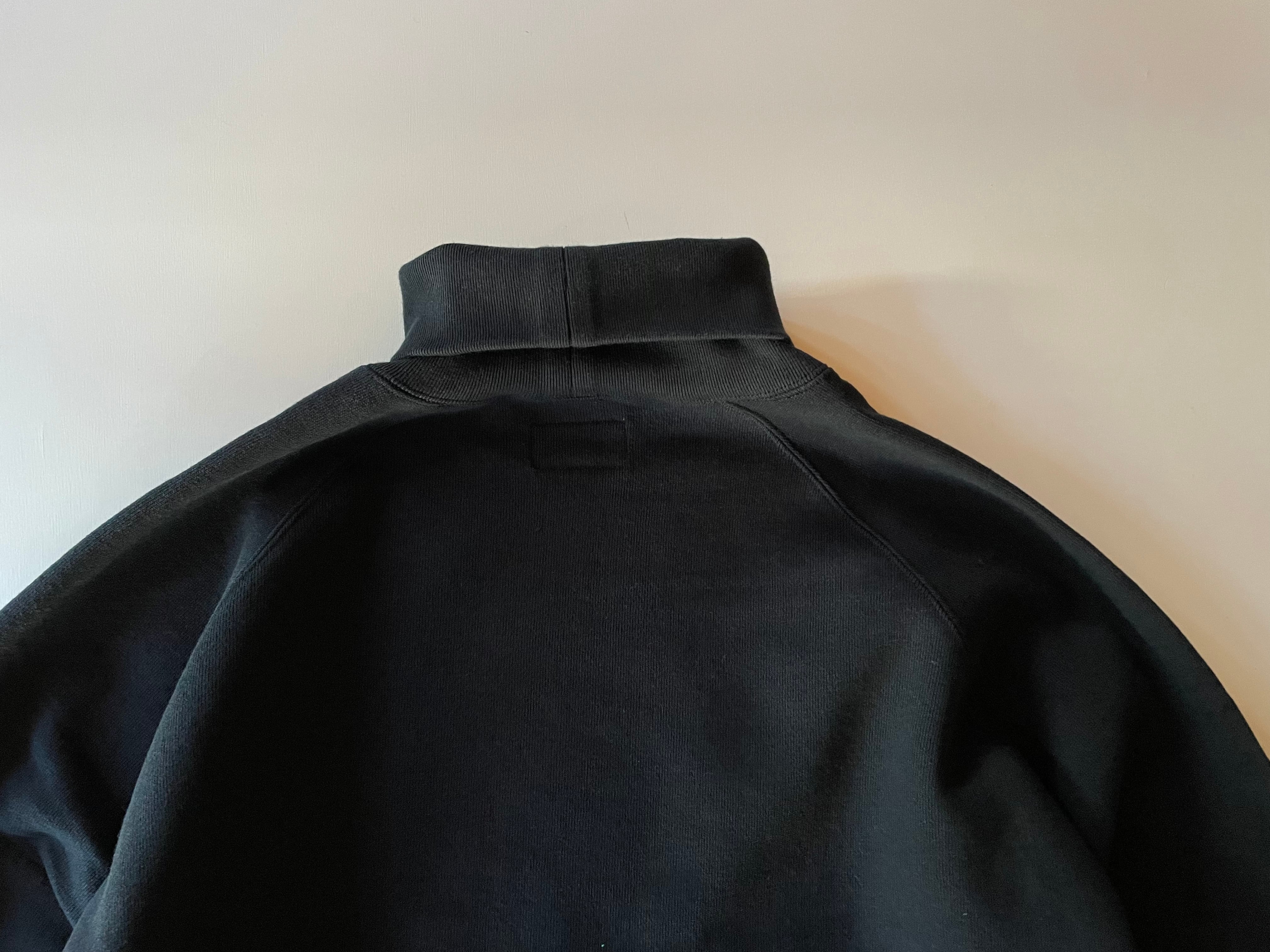 やや長めに設定されたタートルは、そのままでも、折り返しても、どちらでも着用頂けます。タートルネックのデザインを活かしたインナー使いはもちろんのこと、両サイドにポケットが付き、1枚でのご着用もし易い一着です。12オンスの裏起毛生地は3シーズン着用を考慮し、表面はハリがありサラっとした生地感、裏生地はフワフワの毛足を短くした起毛素材を採用。ガシガシ着れ、通常洗濯、脱水も可能なスウェットは、イージーケアな点も特徴のひとつです。