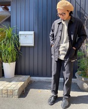 チャイナボタンが特徴的なワークジャケット。生地感も程よく薄く長い期間まで着用できます。