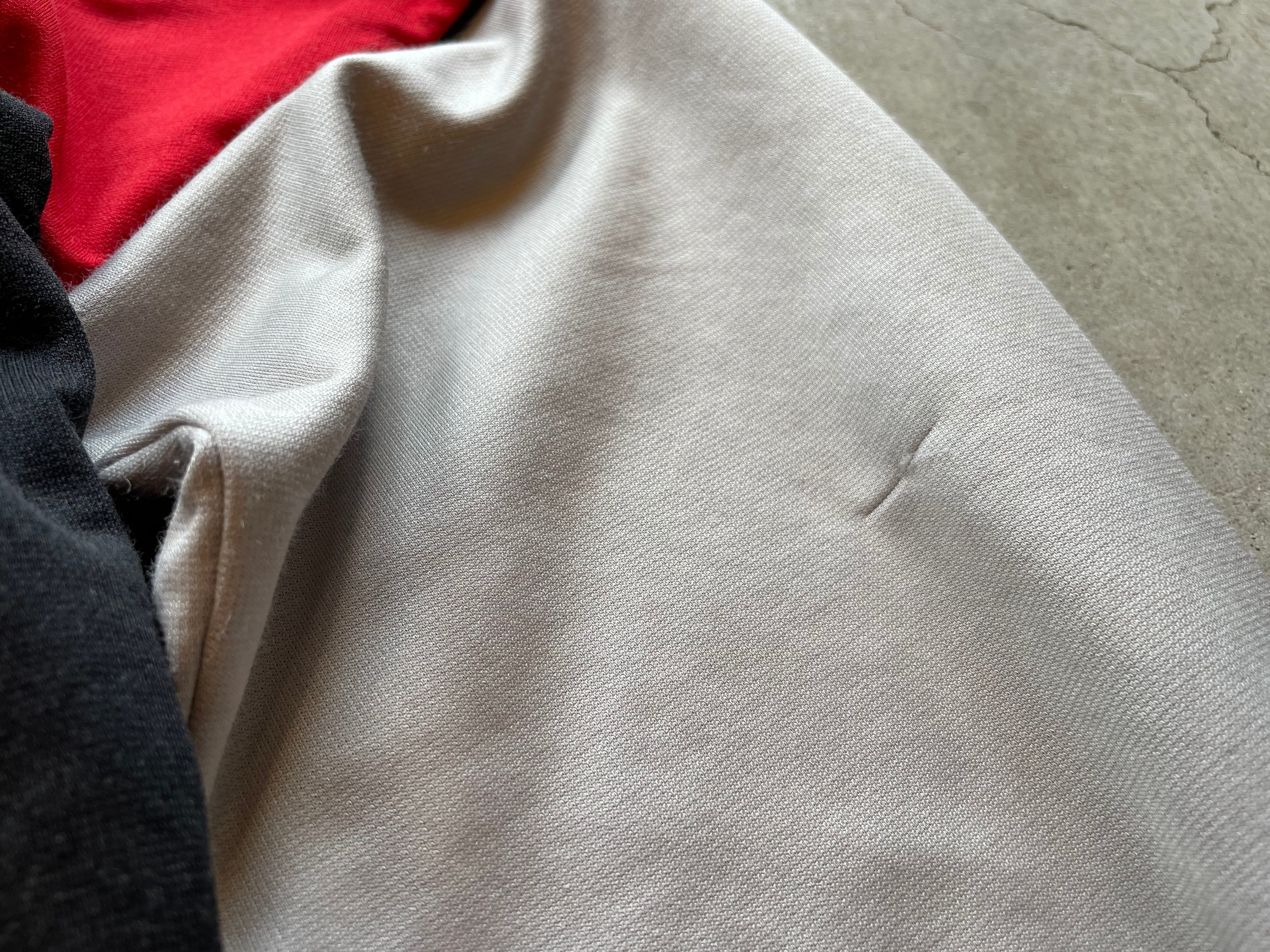 写真のような袖口に汚れ、ひきつれ、フロッキープリント剥がれがあります。